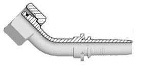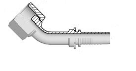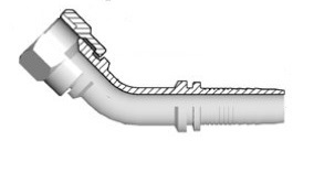 Pressnippel inv UNF JIC, 45º böj, med stiftad mutter